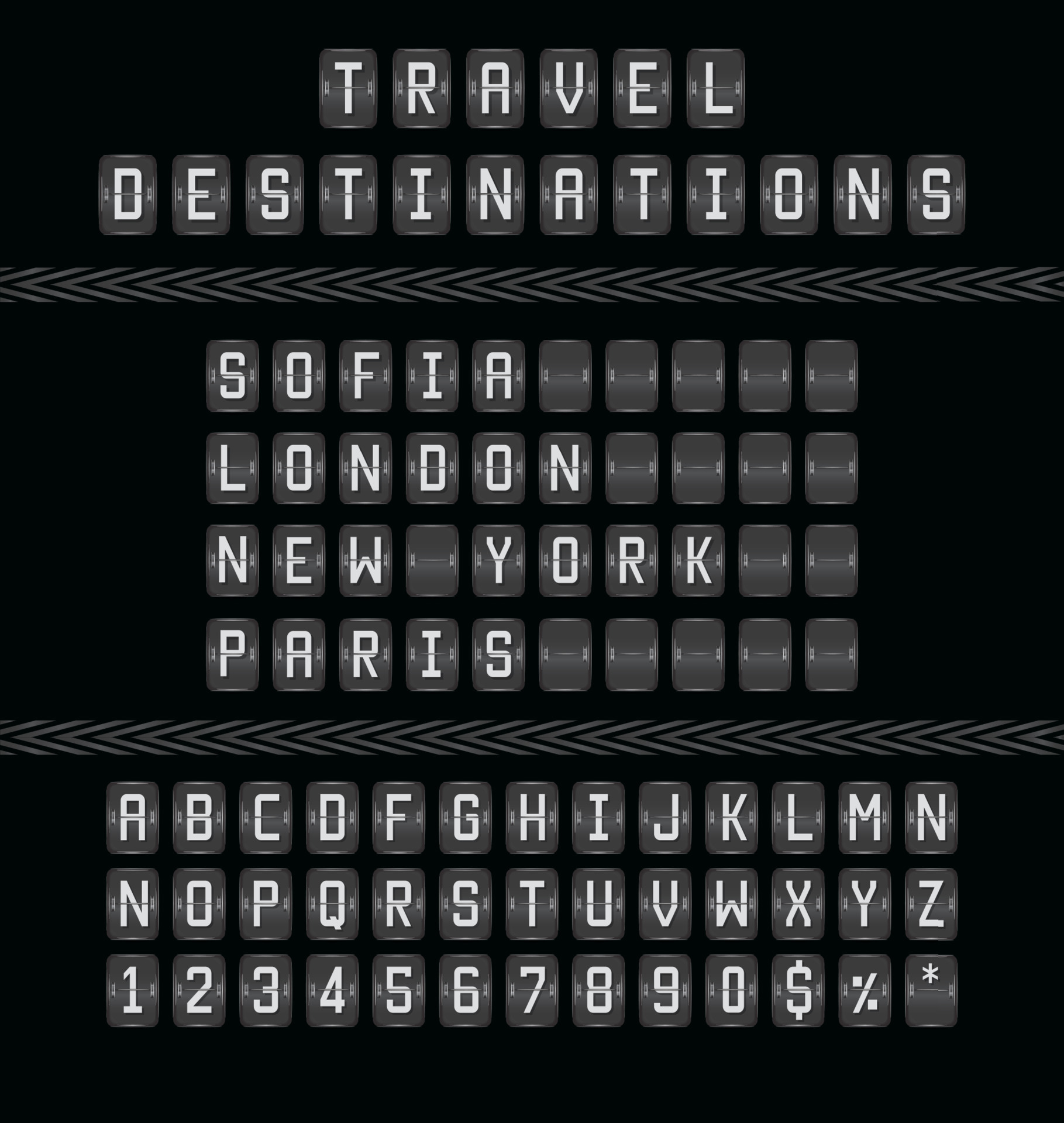 Airport Flip Board Panel With Travel Destinations Realistic Vector Score Board With Mechanical Sign Messages Automatic Analog Time Table In Airport Terminals Alphabet Included With Modern Font 4701159 Vector Art At Vecteezy